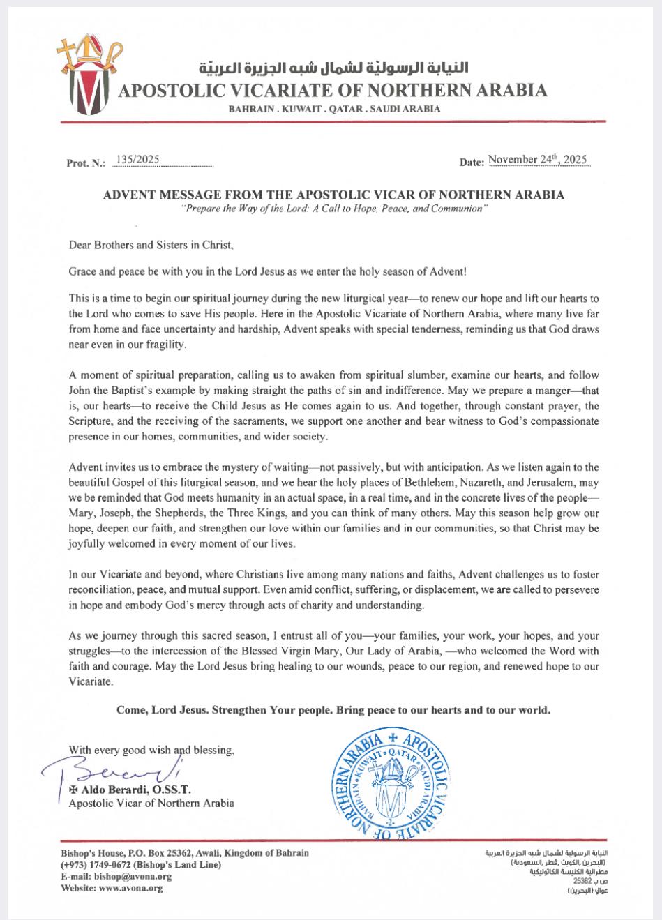 Advent 2025 Message Of His Excellency, Bishop Aldo Berardi, O.SS.T.