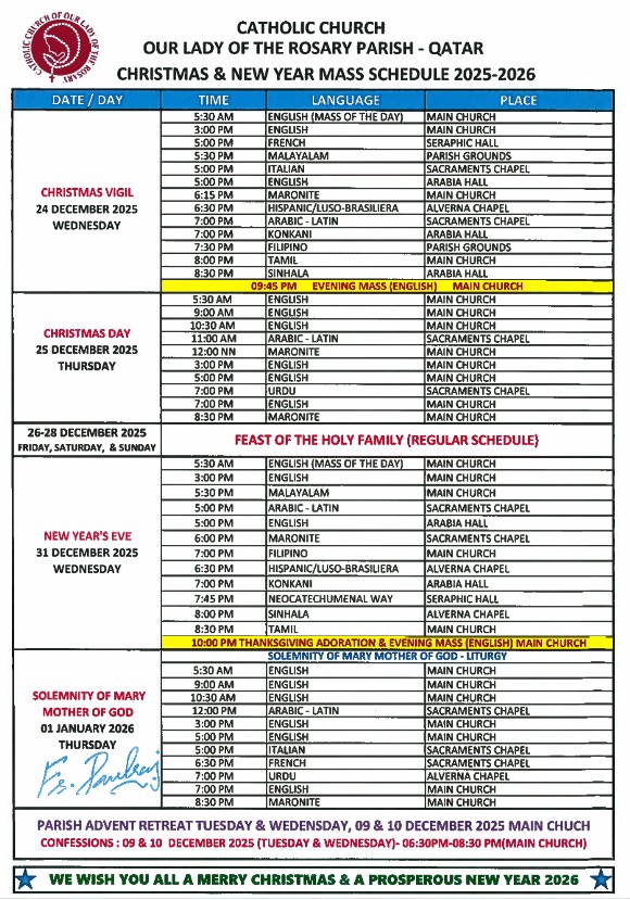 | Christmas and New Year Mass Timings | |||